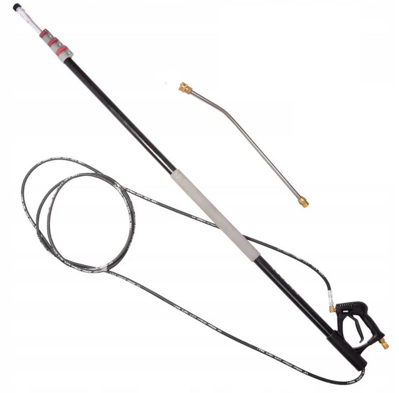 Lanca teleskopowa to idealne rozwiązanie dla osób, które stosują swoją myjkę ciśnieniową nie tylko do mycia samochodów czy tarasów, ale także do wyżej położonych miejsc, takich jak dachy, podbitki, elewacje itp. Prezentowana lanca posiada wytrzymały pistolet ciśnieniowy umieszczony w taki sposób, aby praca była jak najbezpieczniejsza i najwygodniejsza.